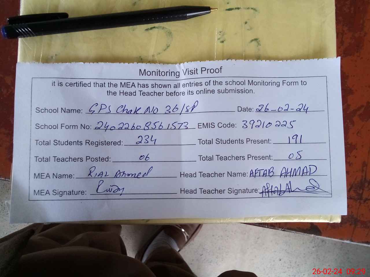 | EMIS Code: 39210225 | Name of School: GPS CHAK NO. 36/SP KHURD | |||