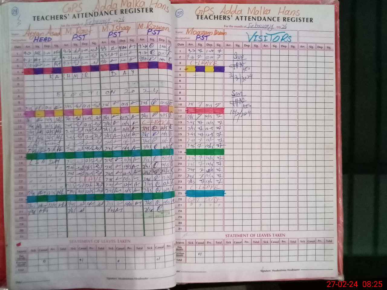 | Leave | Duty | Absent | Maternity | Medical | Ex- Pak |