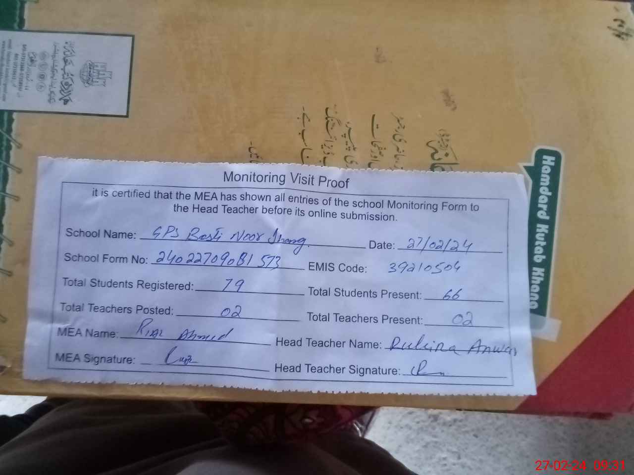 | EMIS Code: 39210504 | Name of School: GPS BASTI NOOR JHANG | |||