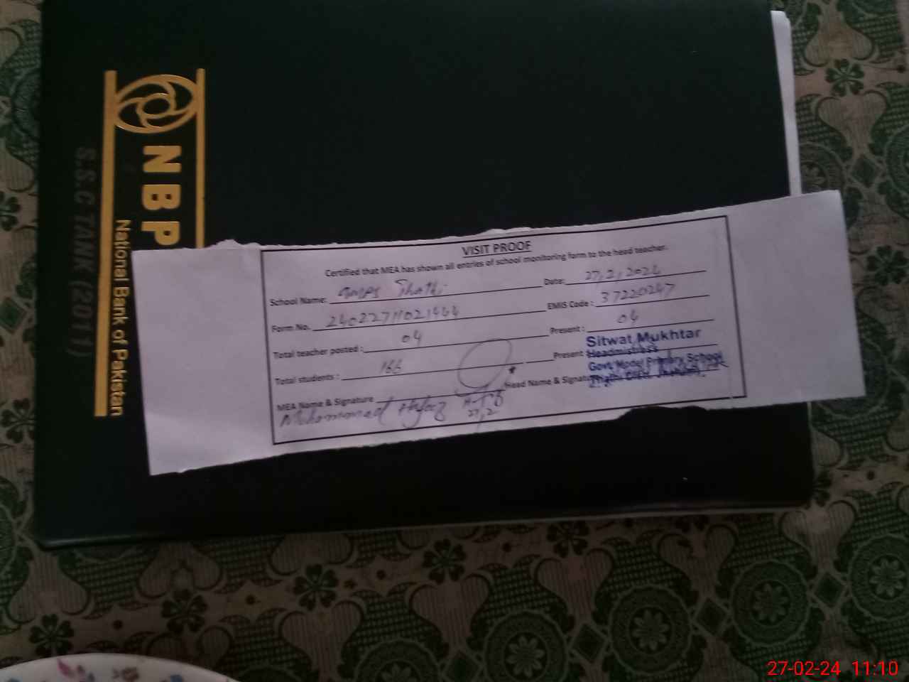 | Attendance Register | Head Teacher | MEA with School | Visit Proof |