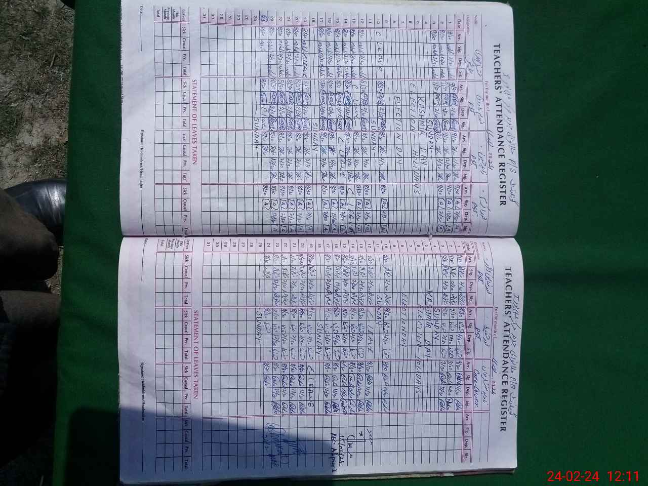 | Leave | Duty | Absent | Maternity | Medical | Ex- Pak |
