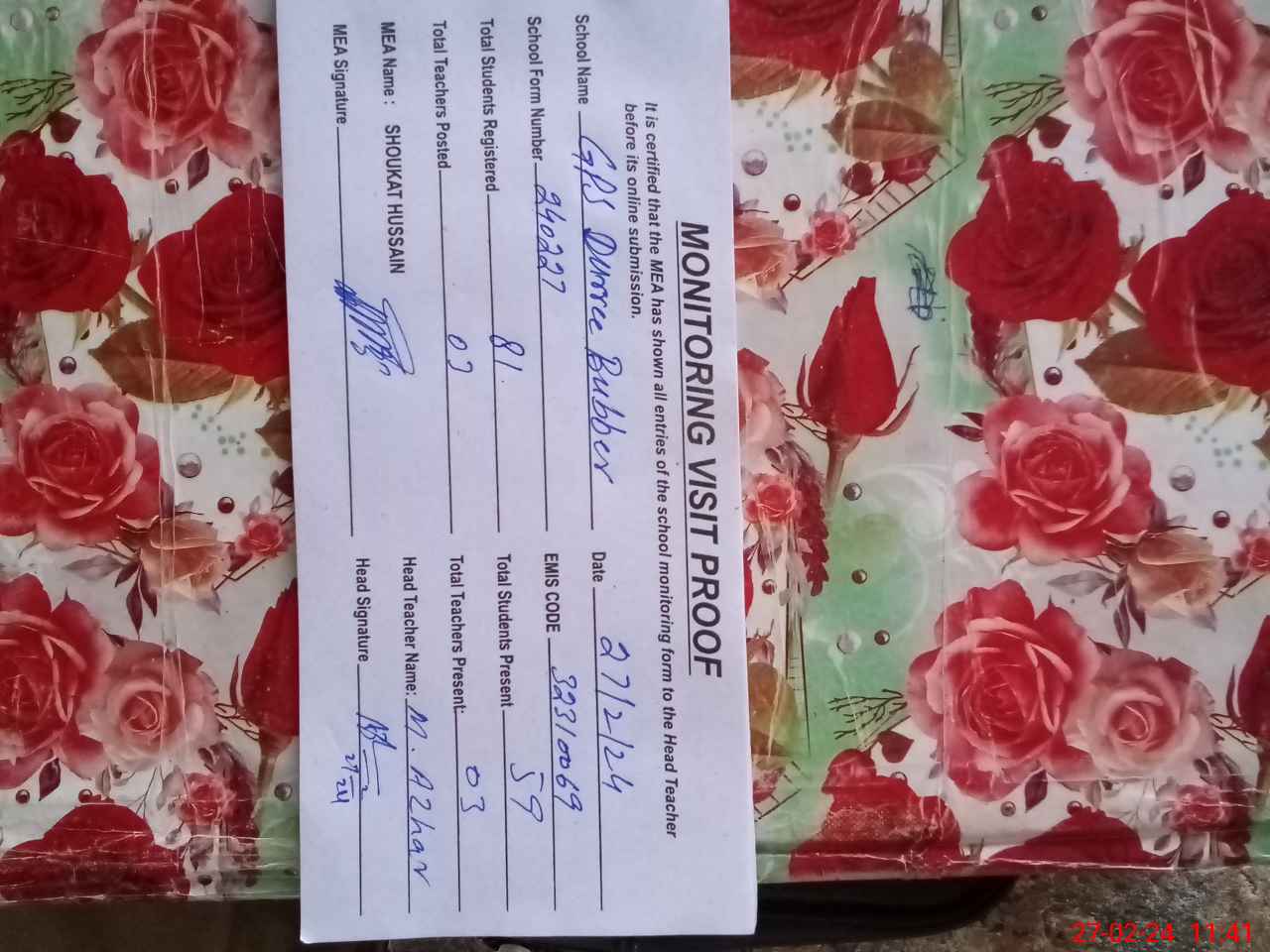 | EMIS Code: 32310069 | Name of School: GPS DUREE BABBER | |||