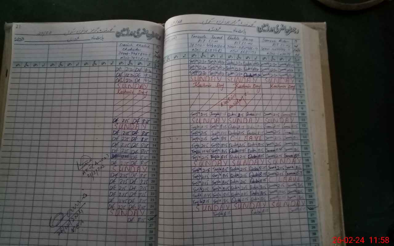 | CNIC | Full Name | Designation | R/C | Absence During Last Calender Month |