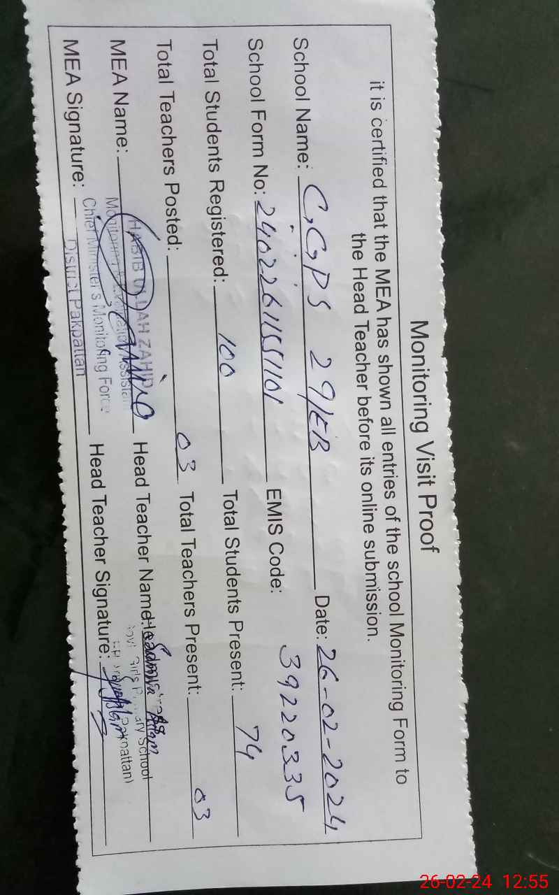 | Certified that this School was Inspected by the Undersigned MEA/DMO Today and the Information Stated Above is as Per Record. | |||||