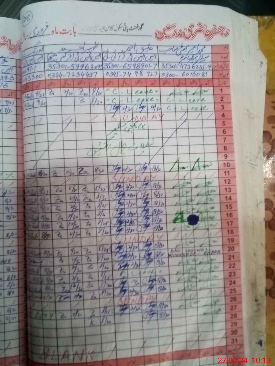 | CNIC | Full Name | Designation | R/C | Absence During Last Calender Month |