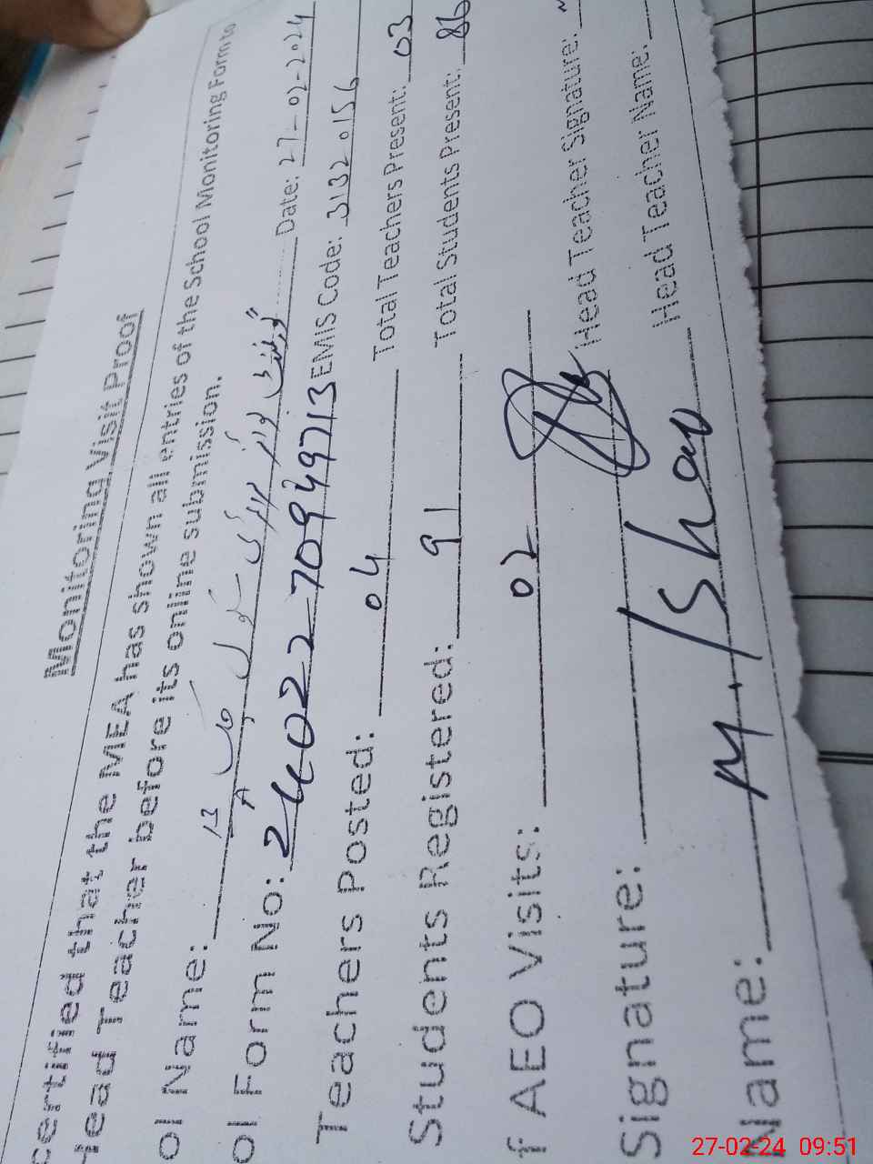 | Name: Mu**** Sh**** Designation: (School Headmaster's/Headmistress's) PST/PTC/JV Phone/Cell Number: 03**** |