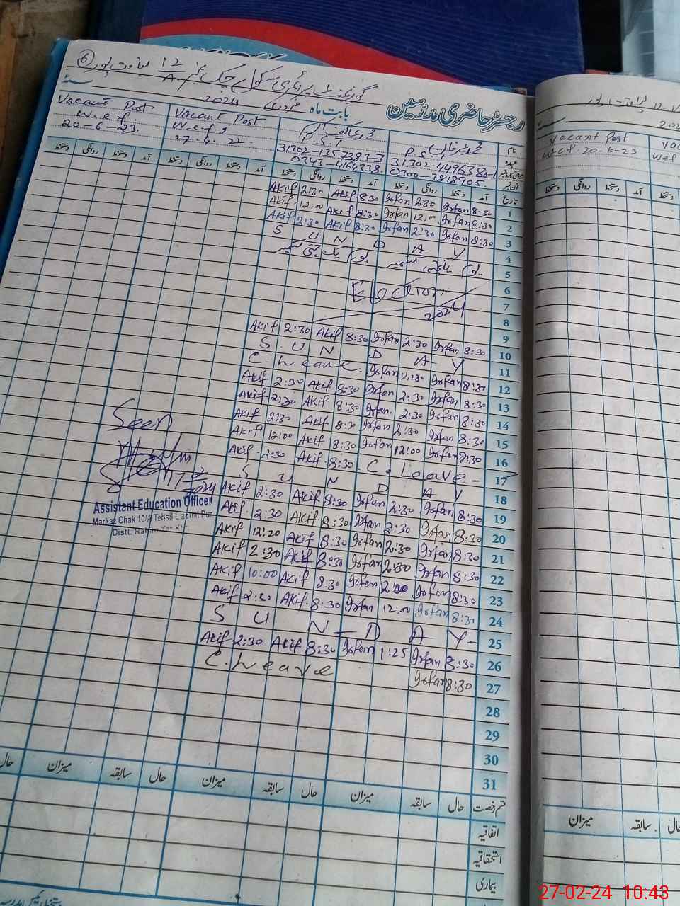 | Name: MU**** IR**** Designation: (School Headmaster's/Headmistress's) PST Phone/Cell Number: 03**** |