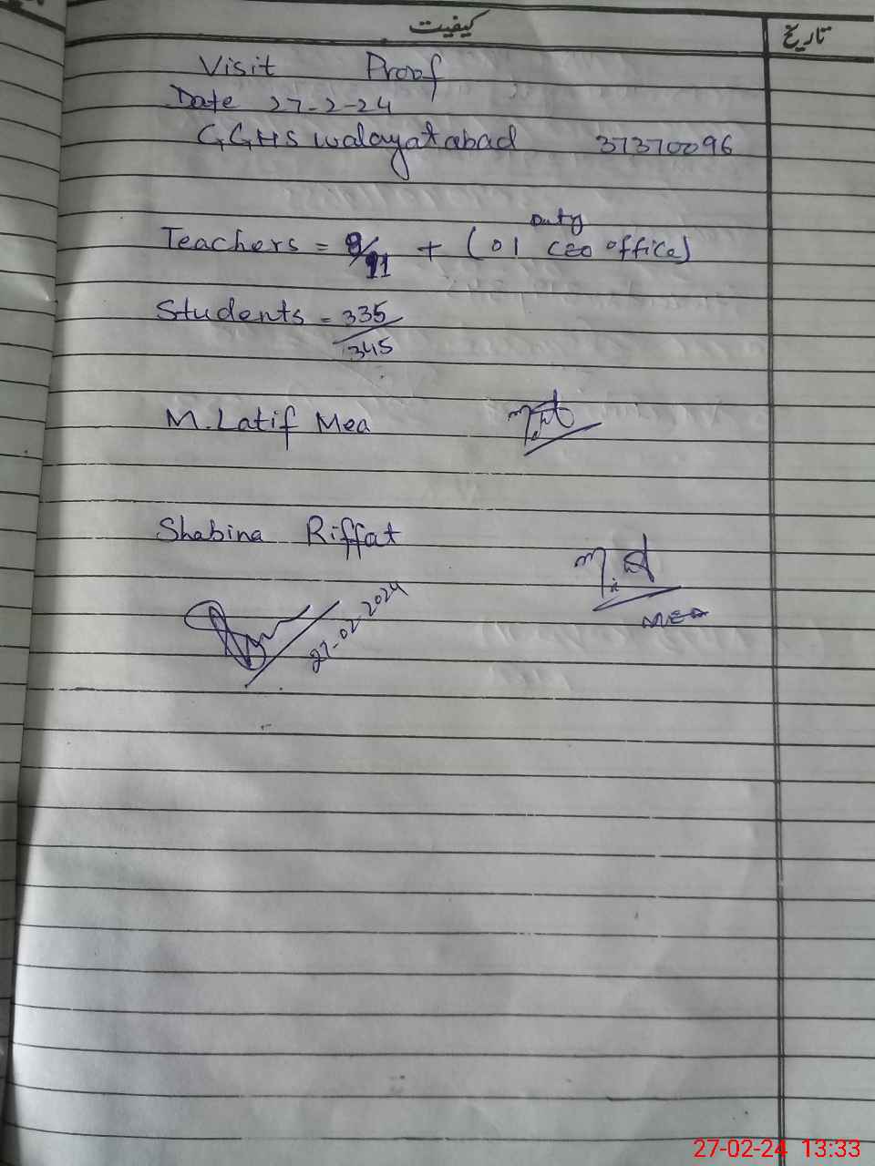 | EMIS Code: 37370096 | Name of School: GGHS WALAYAT ABAD | |||