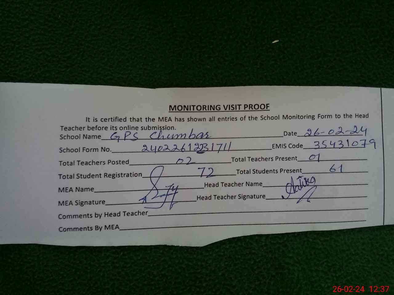 | EMIS Code: 35431079 | Name of School: GPS CHUMBER | |||