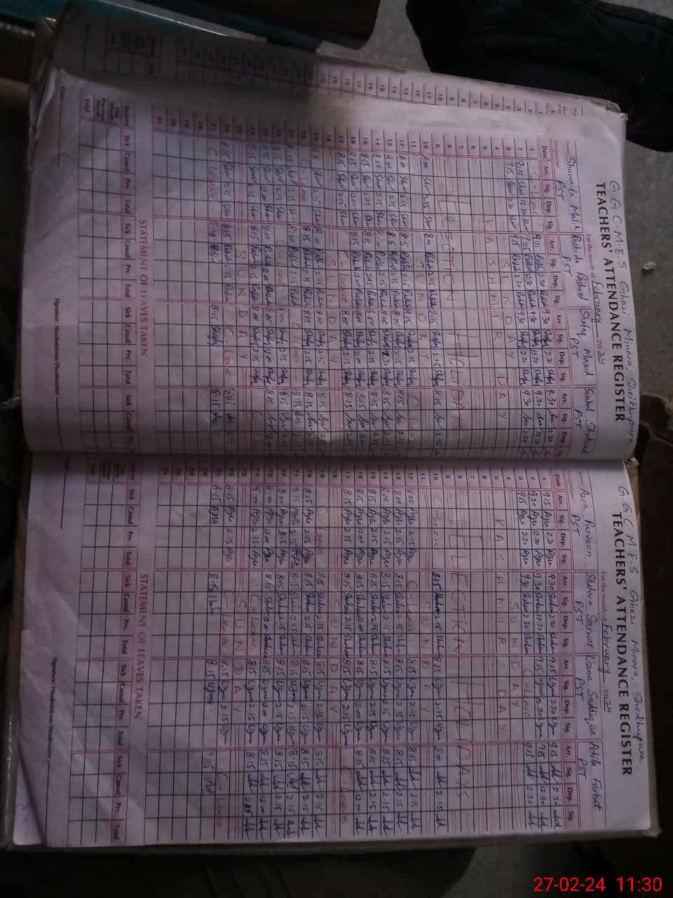 | Monitoring Date: 27-02-2024 | Start Time: 27-02-2024 10:41 AM | End Time: 27-02-2024 11:35 AM | Name of MEA: Mu**** Ar**** | |