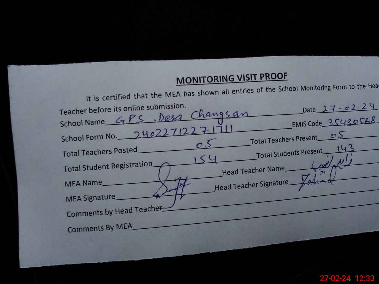 | EMIS Code: 35430568 | Name of School: GPS DERA CHANGRAN | |||