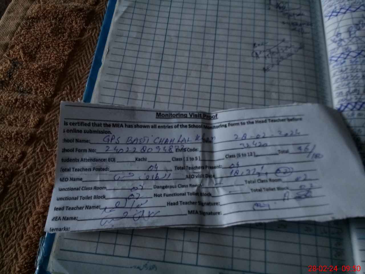 | EMIS Code: 32420109 | Name of School: GPS BASTI CHAH LAL KHAN | |||