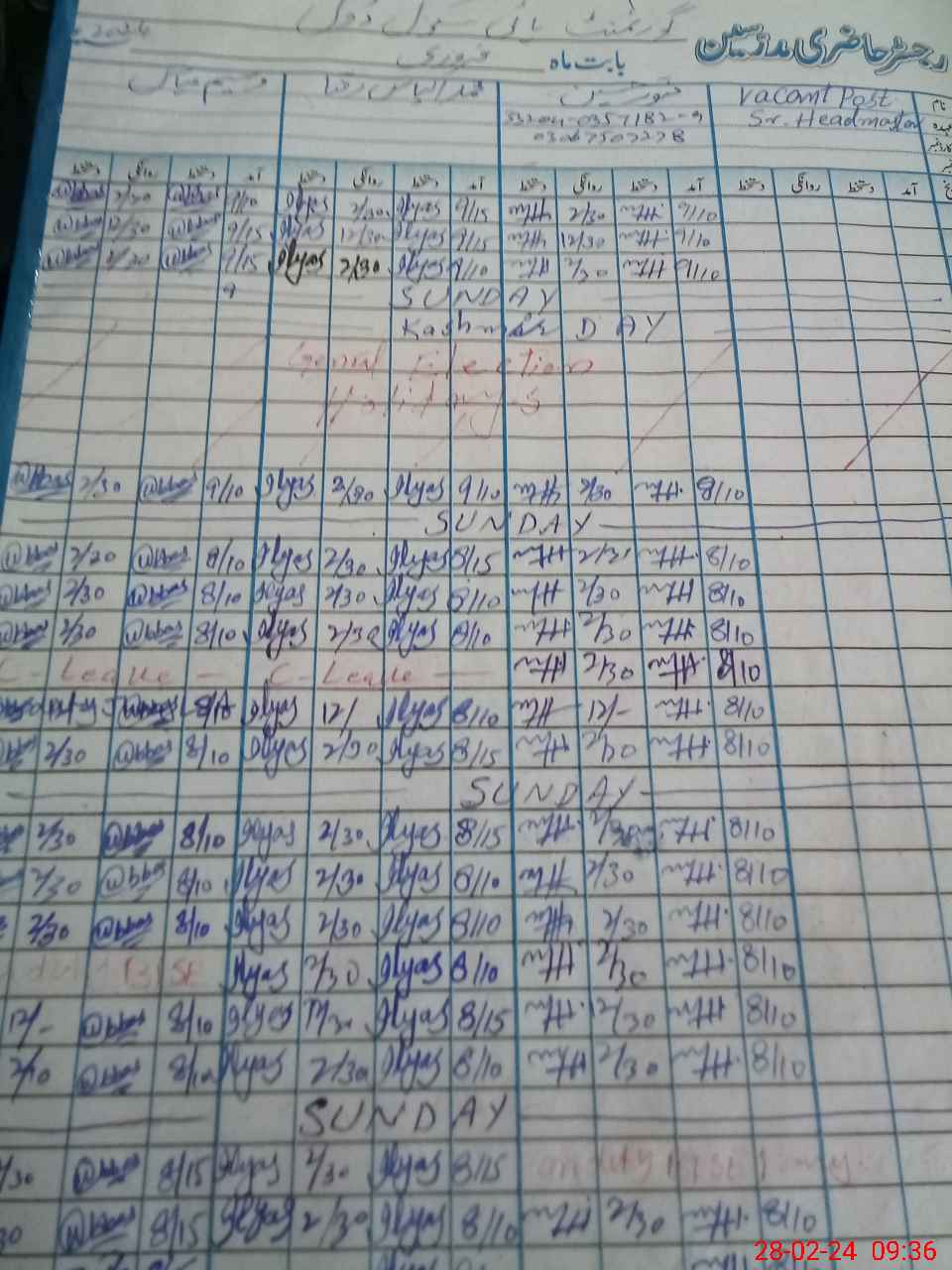 | Name: If**** Ah**** Kh**** Designation: (School Headmaster's/Headmistress's) Senior Head Master Phone/Cell Number: 03**** |