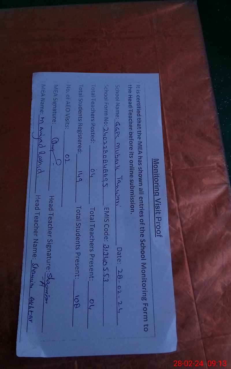 | EMIS Code: 31340553 | Name of School: GGPS MUBARAK TANWERI | |||