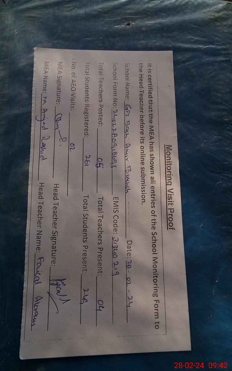 | EMIS Code: 31340219 | Name of School: GPS BASTI AMIR BUX | |||