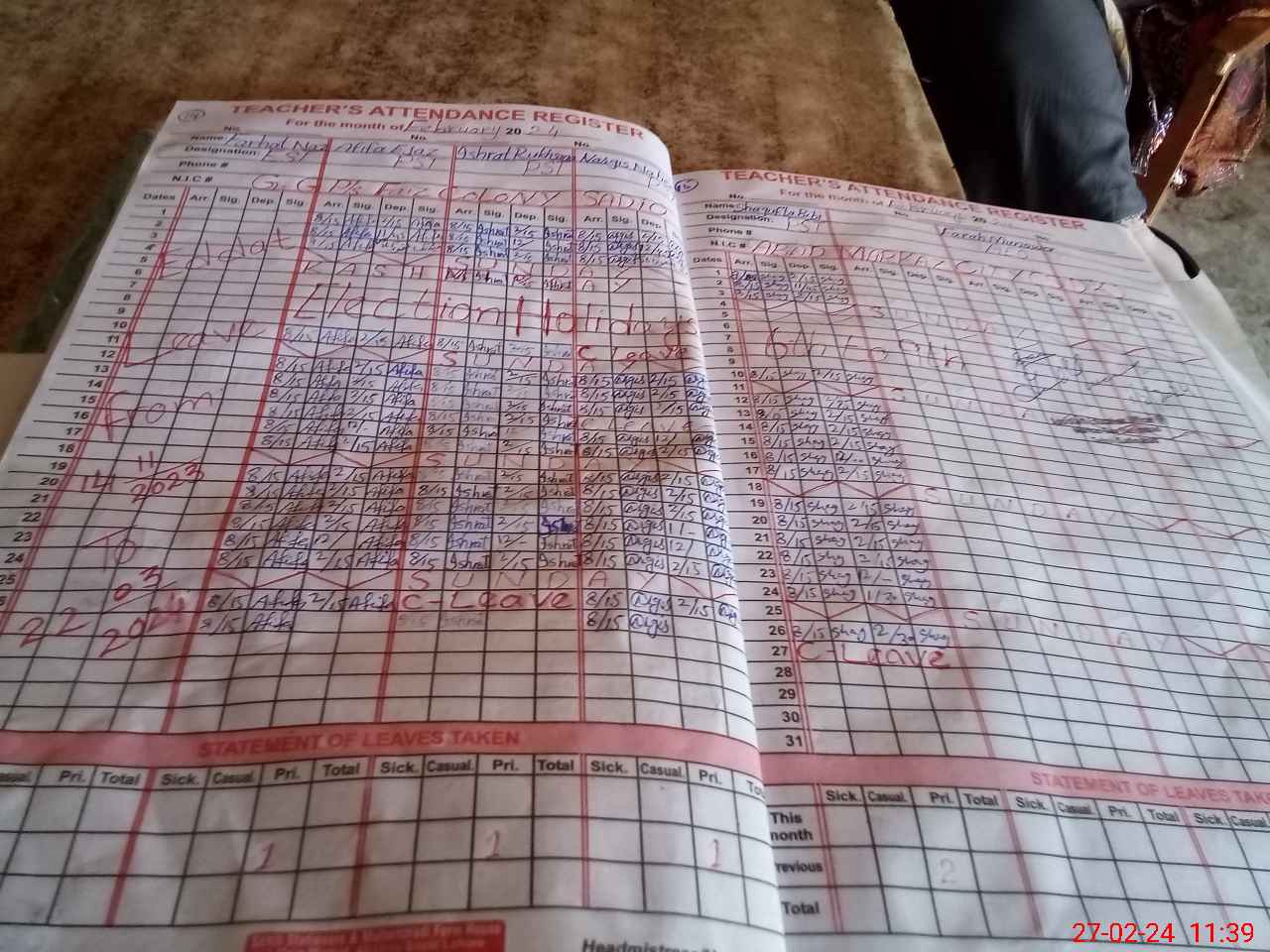 | CNIC | Full Name | Designation | R/C | Absence During Last Calender Month |