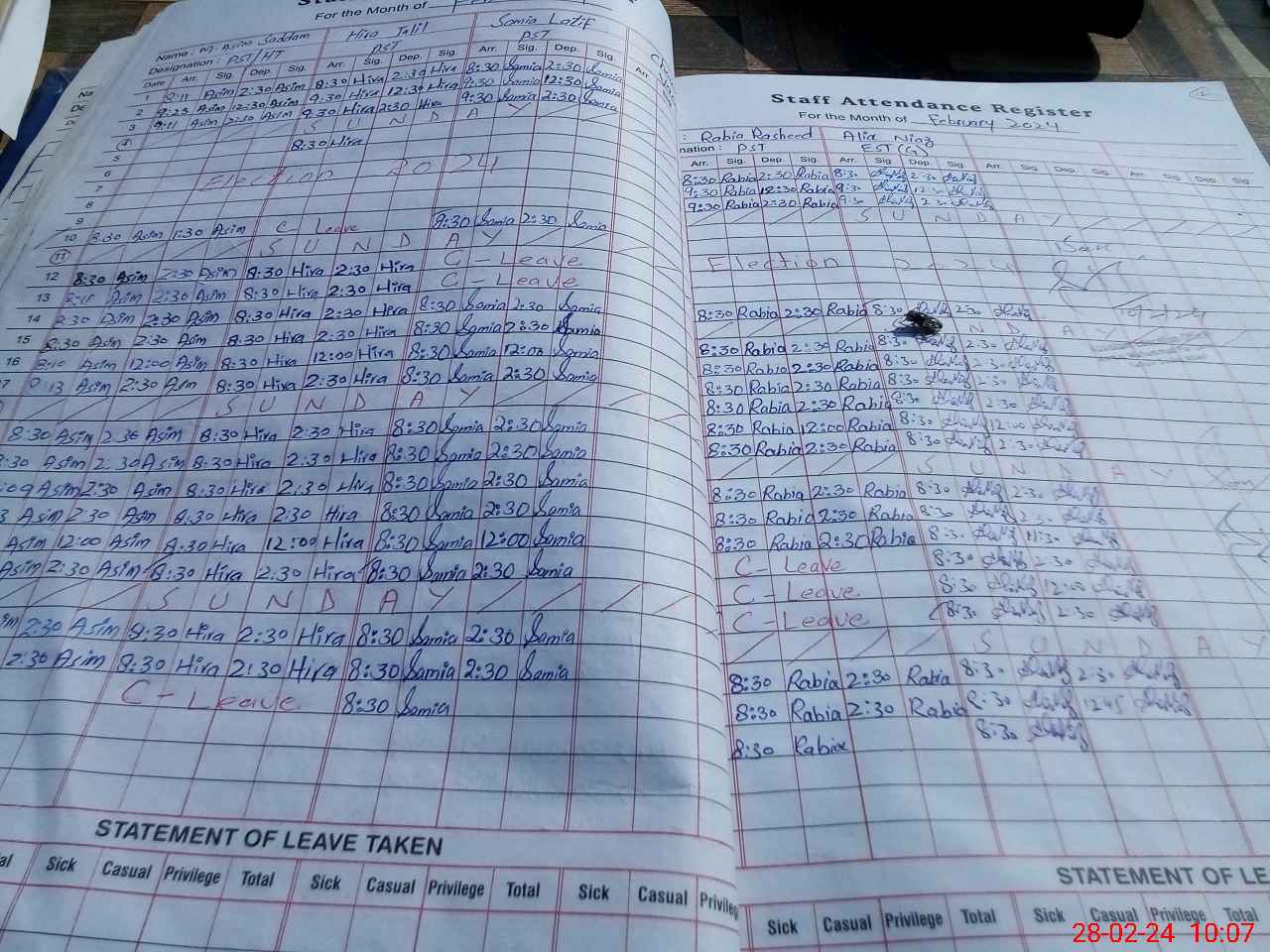 | Leave | Duty | Absent | Maternity | Medical | Ex- Pak |