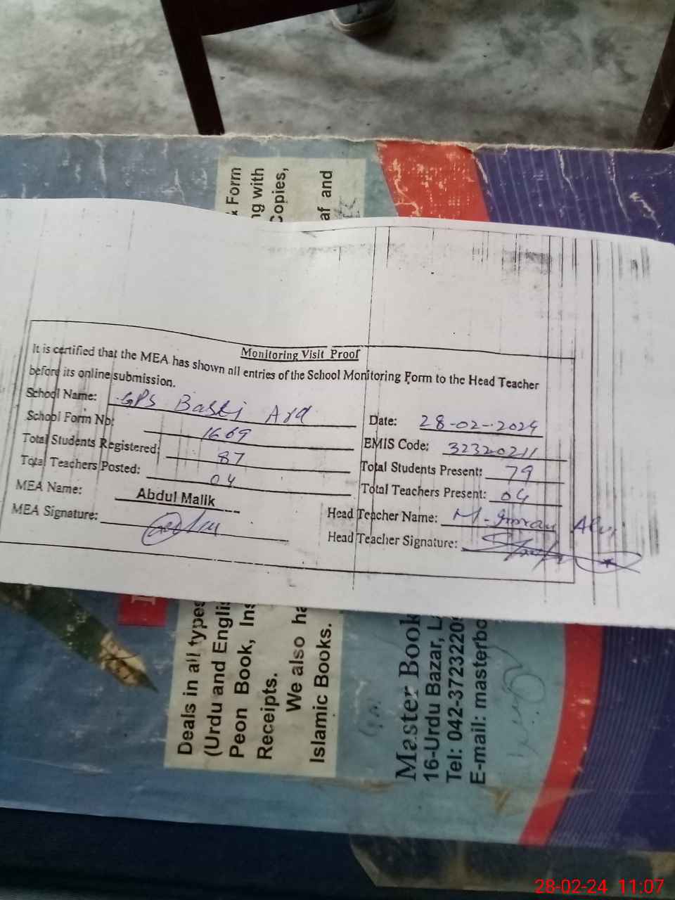 | EMIS Code: 32320211 | Name of School: GPS BASTI ARA | |||