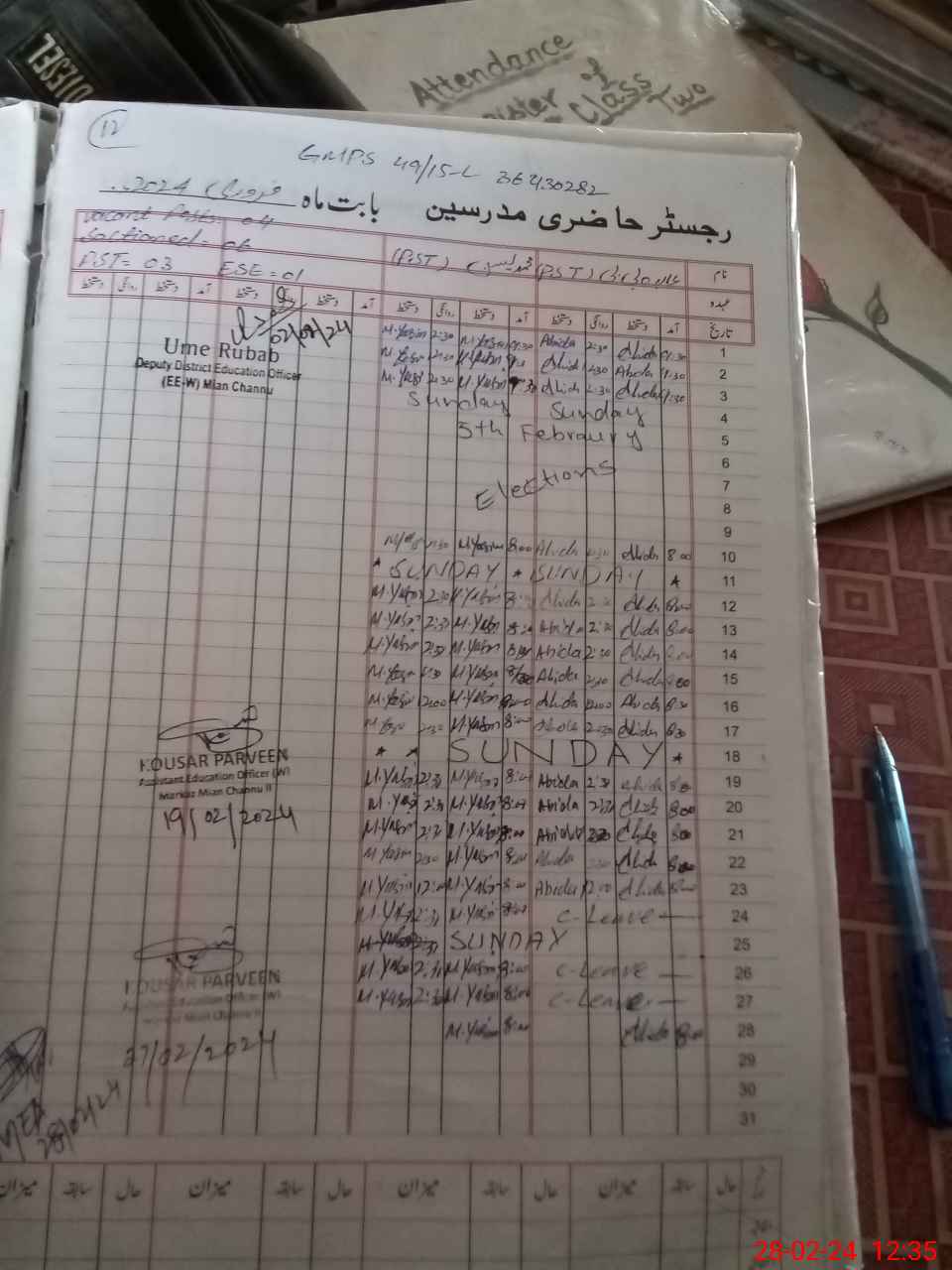 | Total Students Present | 16 | 0 | 45 | 36 | 38 | 35 | 30 | 26 | 226 | |||||||