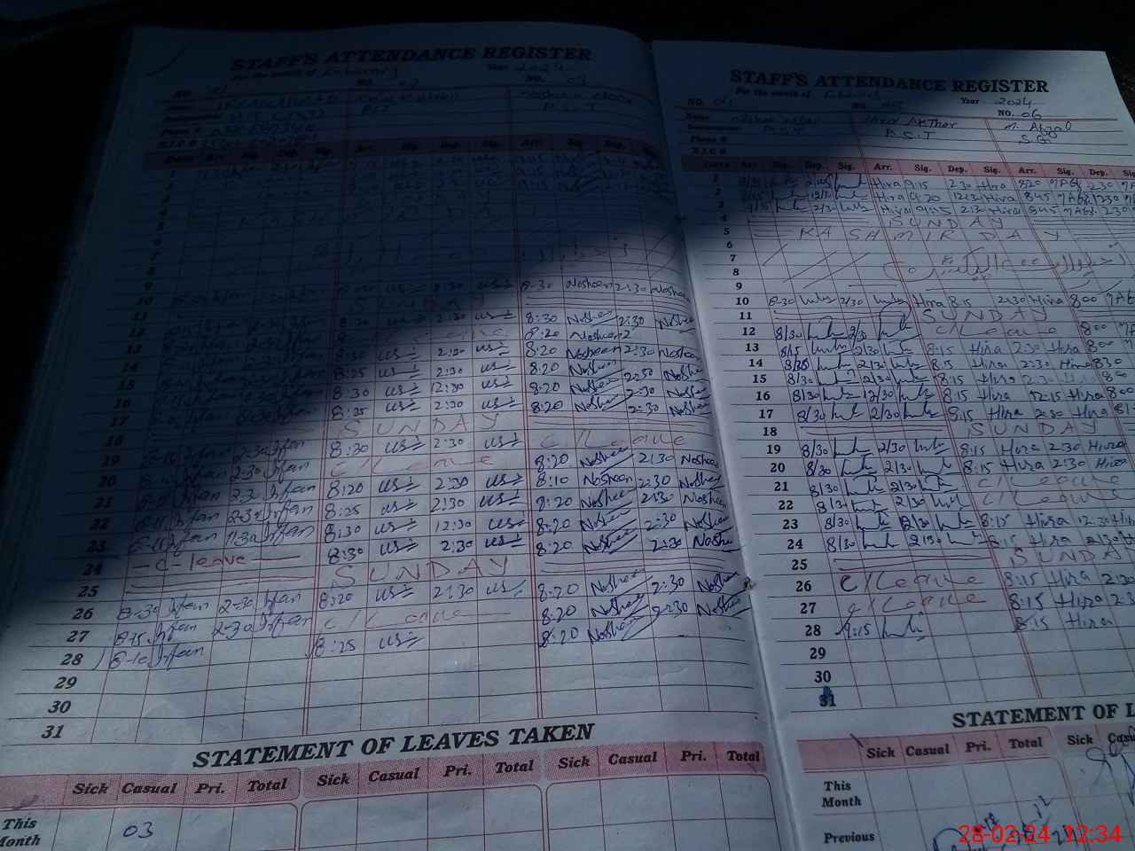 | Leave | Duty | Absent | Maternity | Medical | Ex- Pak |