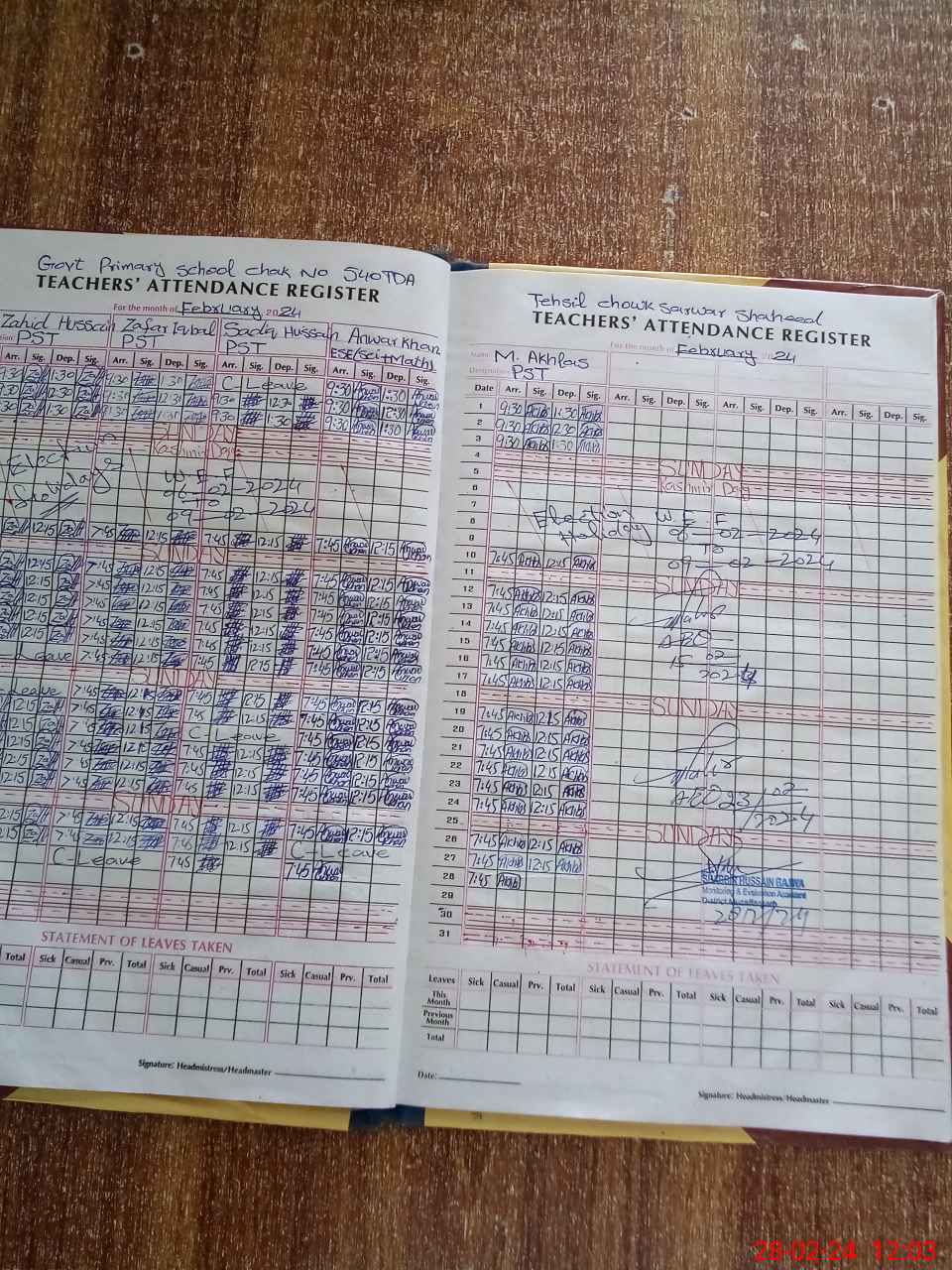 | Name: SA**** HU**** Designation: (School Headmaster's/Headmistress's) PST Phone/Cell Number: 03**** |
