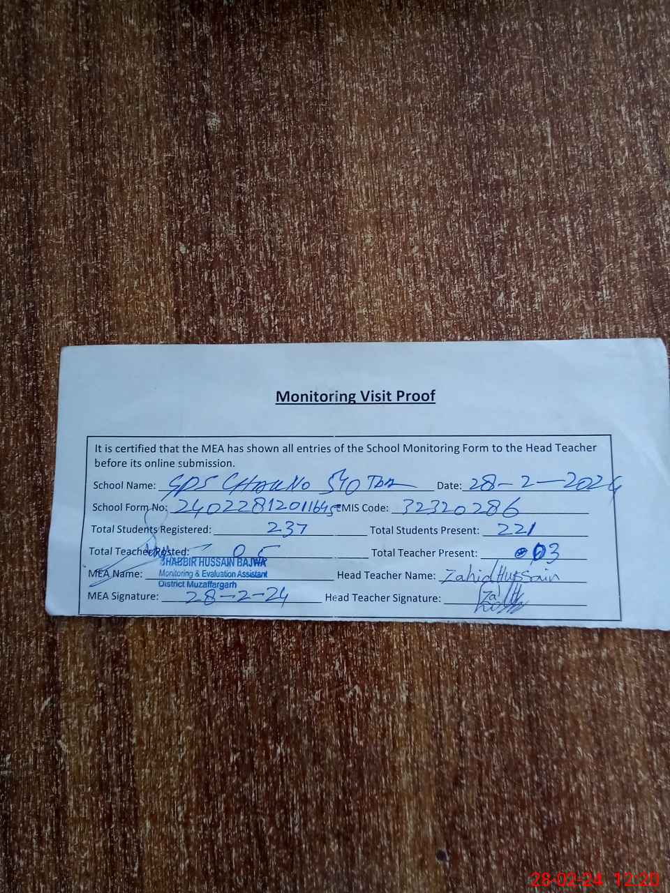 | EMIS Code: 32320286 | Name of School: GPS CHAK NO.540 TDA | |||