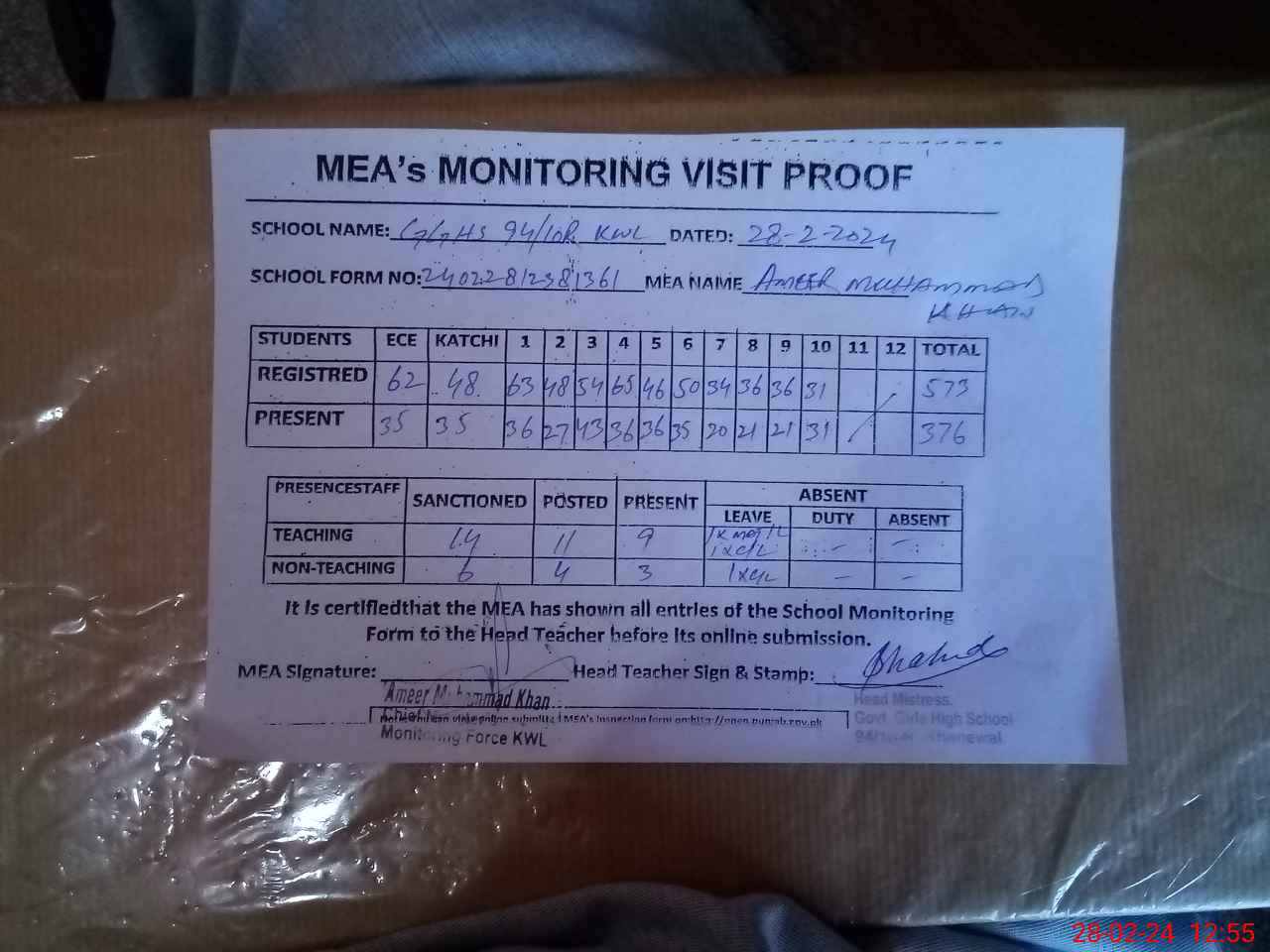 | EMIS Code: 36420098 | Name of School: GGHS 94/10-R, KHANEWAL | |||