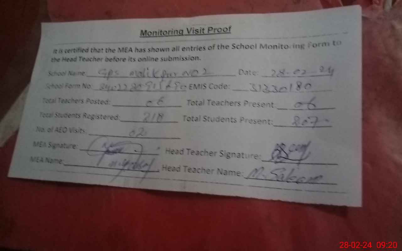 | EMIS Code: 31330180 | Name of School: GPS MALIK PUR NO. 2 | |||
