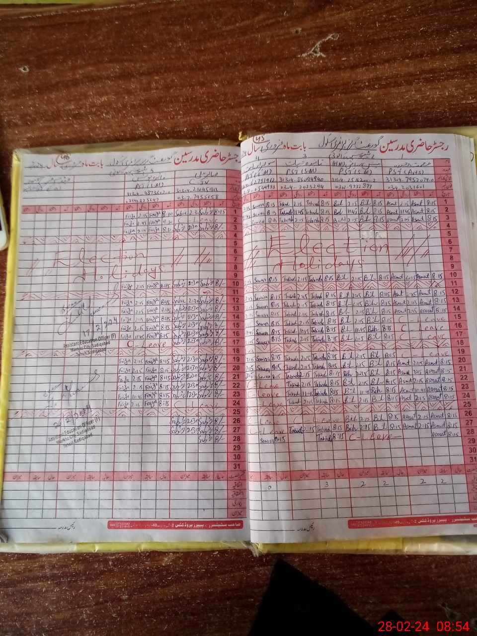 | CNIC | Full Name | Designation | R/C | Absence During Last Calender Month |