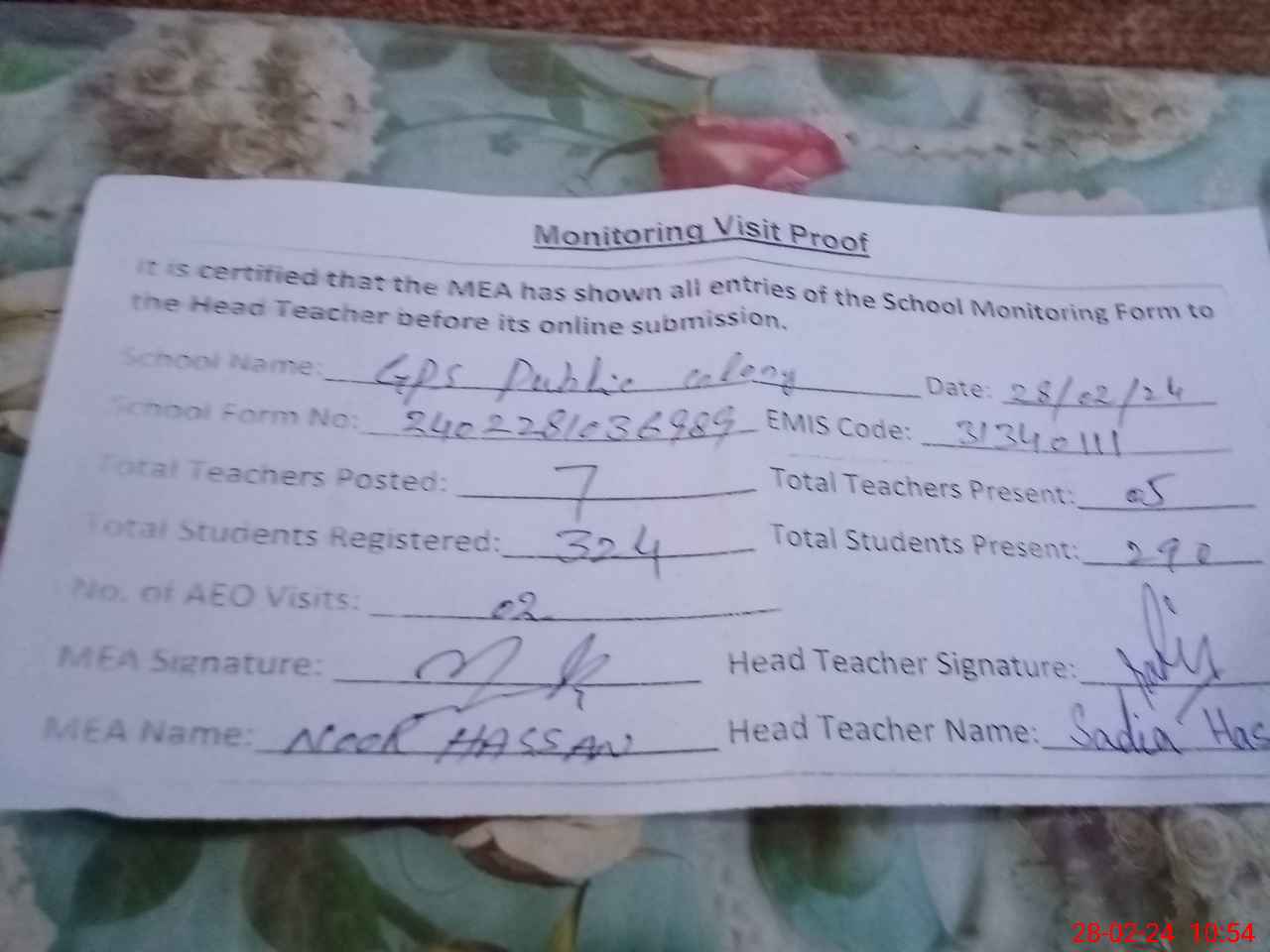| EMIS Code: 31340111 | Name of School: GPS PUBLIC COLONY | |||