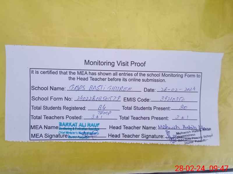 | EMIS Code: 39210350 | Name of School: GGPS BASTI GHUREE | |||