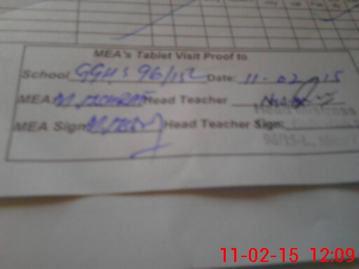 | Attendance Register | Head Teacher | MEA with School | Visit Proof |
