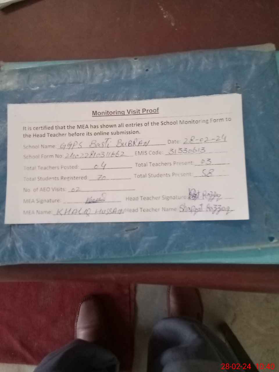| EMIS Code: 31330613 | Name of School: GGPS BASTI BUBRAN | |||