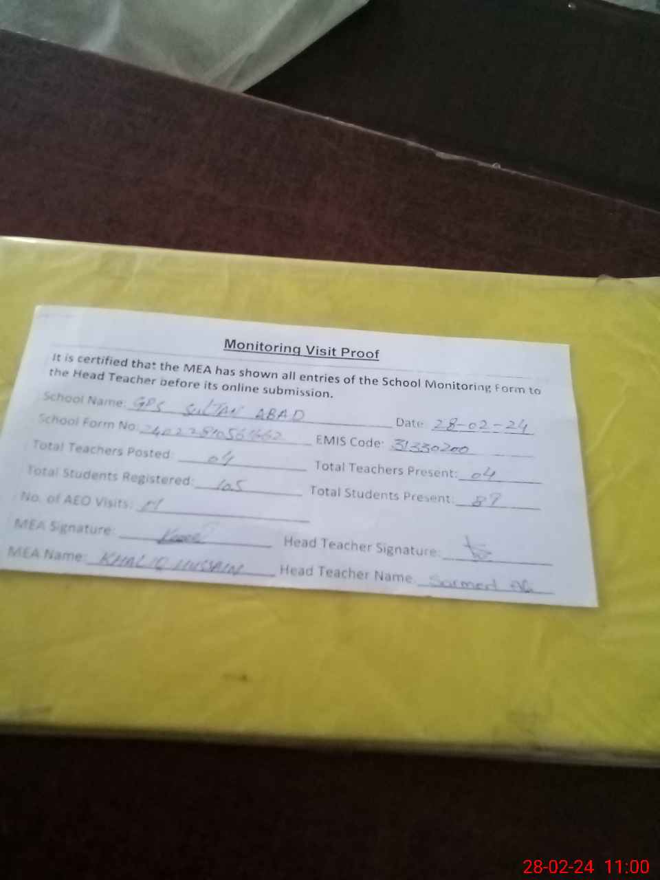 | EMIS Code: 31330200 | Name of School: GPS SULTAN ABAD | |||