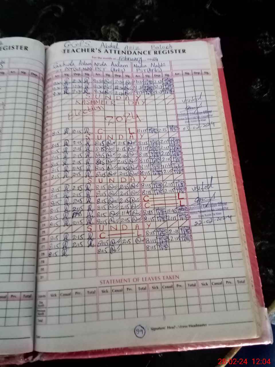 | Leave | Duty | Absent | Maternity | Medical | Ex- Pak |
