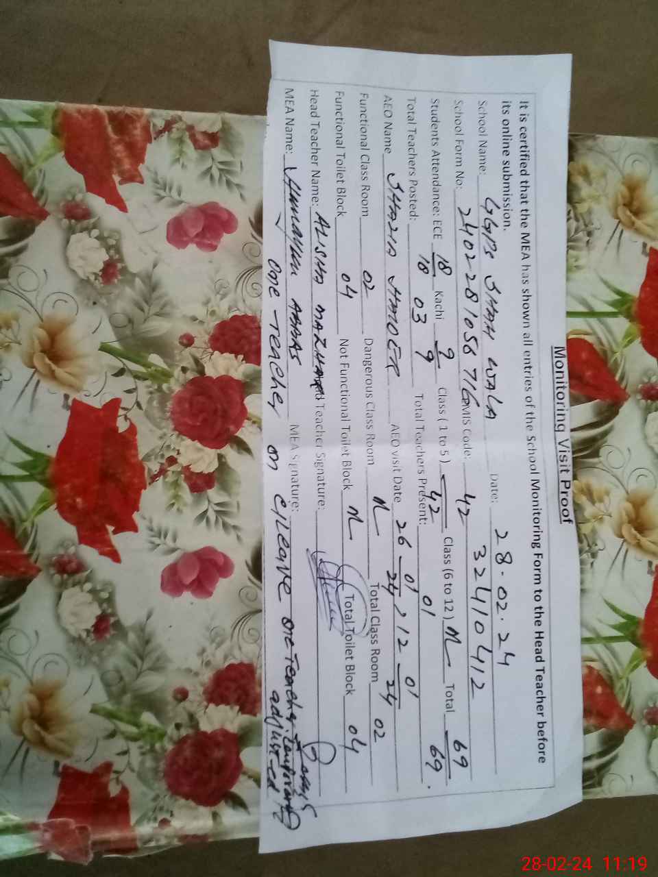 | EMIS Code: 32410412 | Name of School: GGPS SHAH WALA | |||