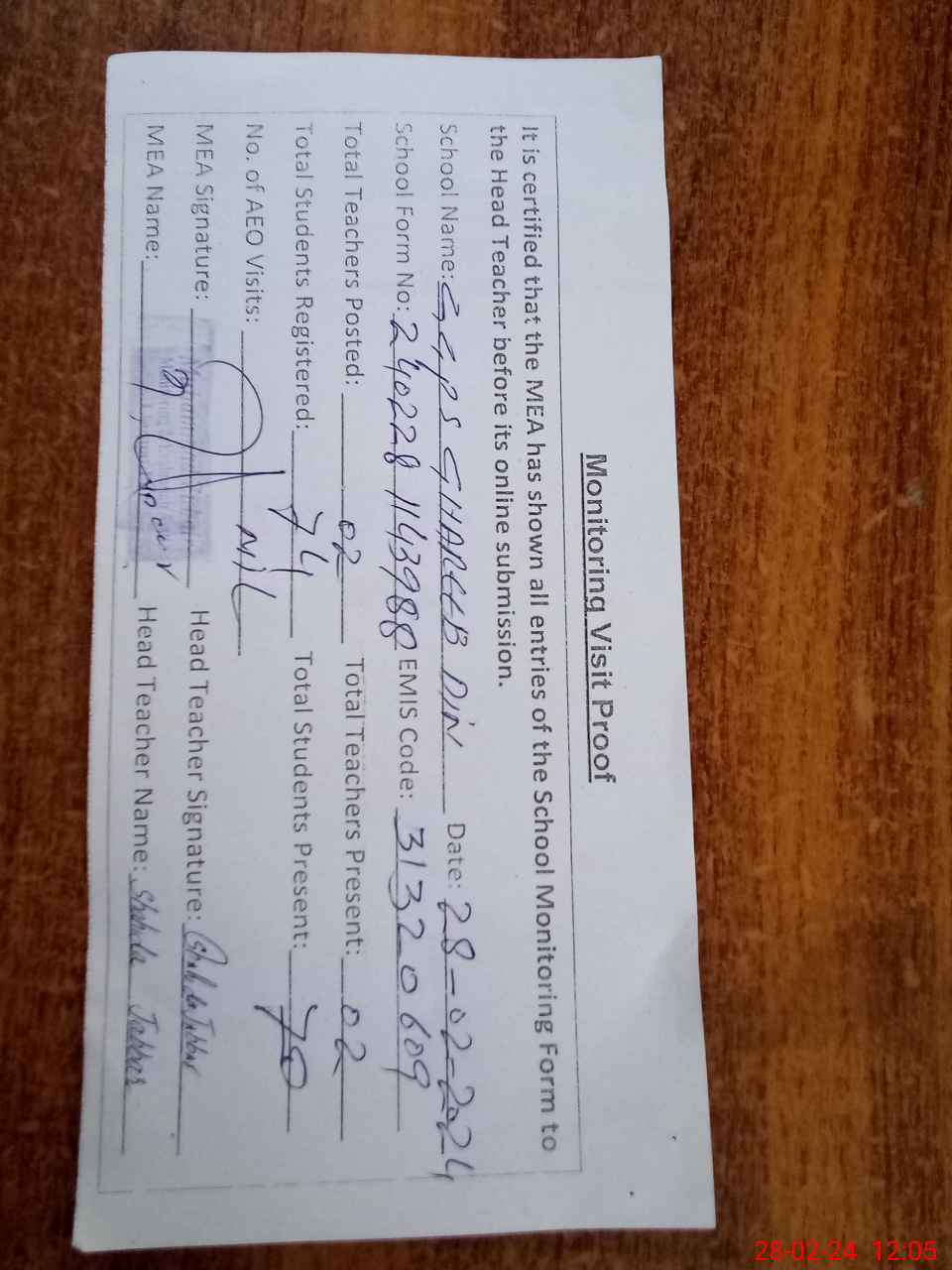 | EMIS Code: 31320609 | Name of School: GGPS GHARIB DIN | |||