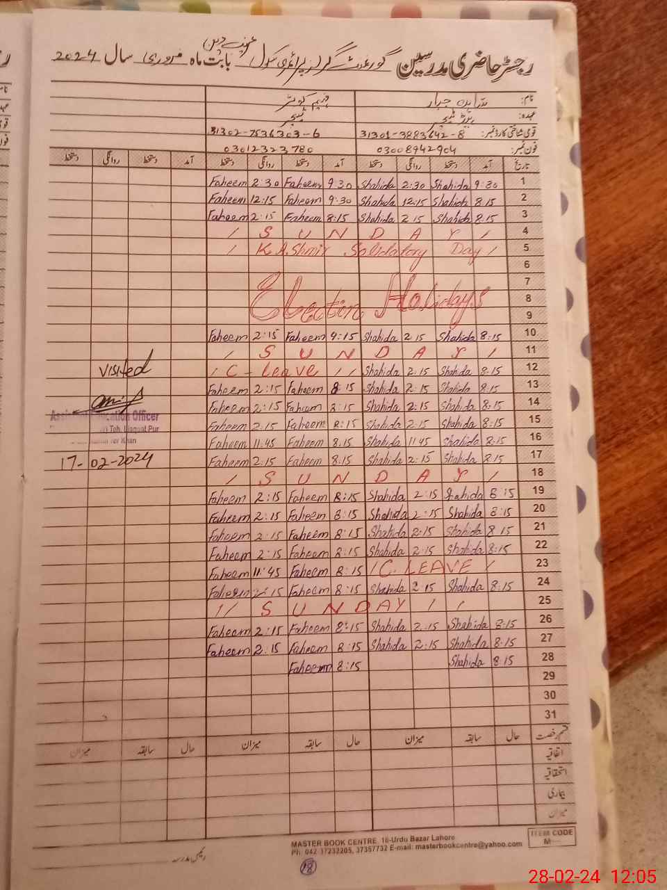 | Name: Sh**** Ja**** Designation: (School Headmaster's/Headmistress's) PST Phone/Cell Number: 03**** |