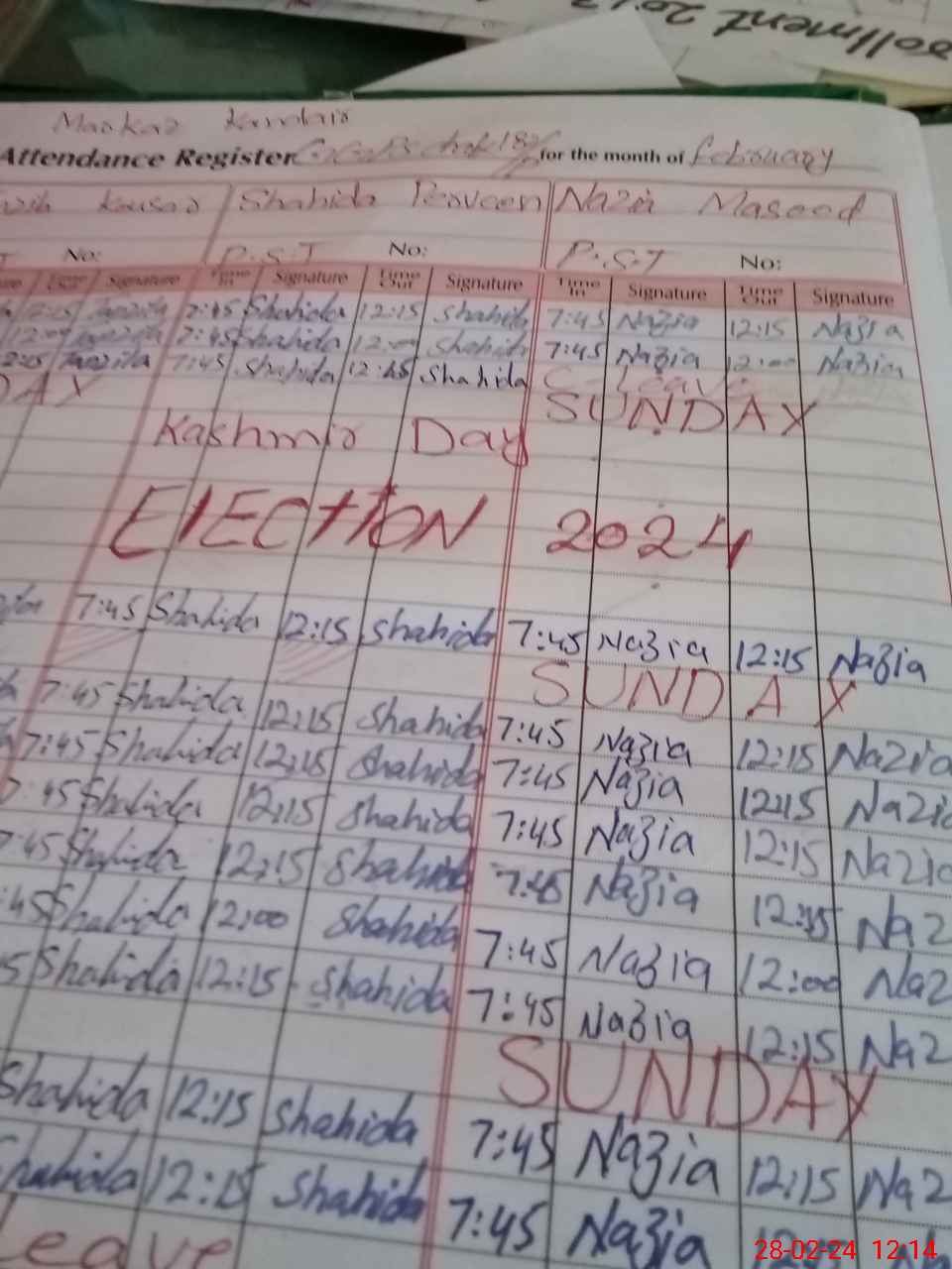 | CNIC | Full Name | Designation | R/C | Absence During Last Calender Month |