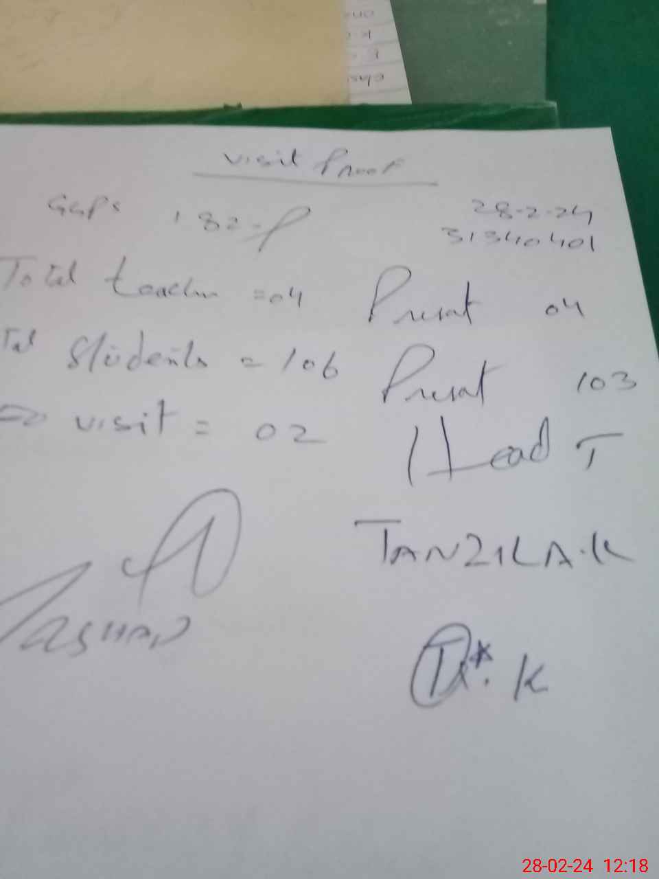 | Attendance Register | Head Teacher | MEA with School | Visit Proof |