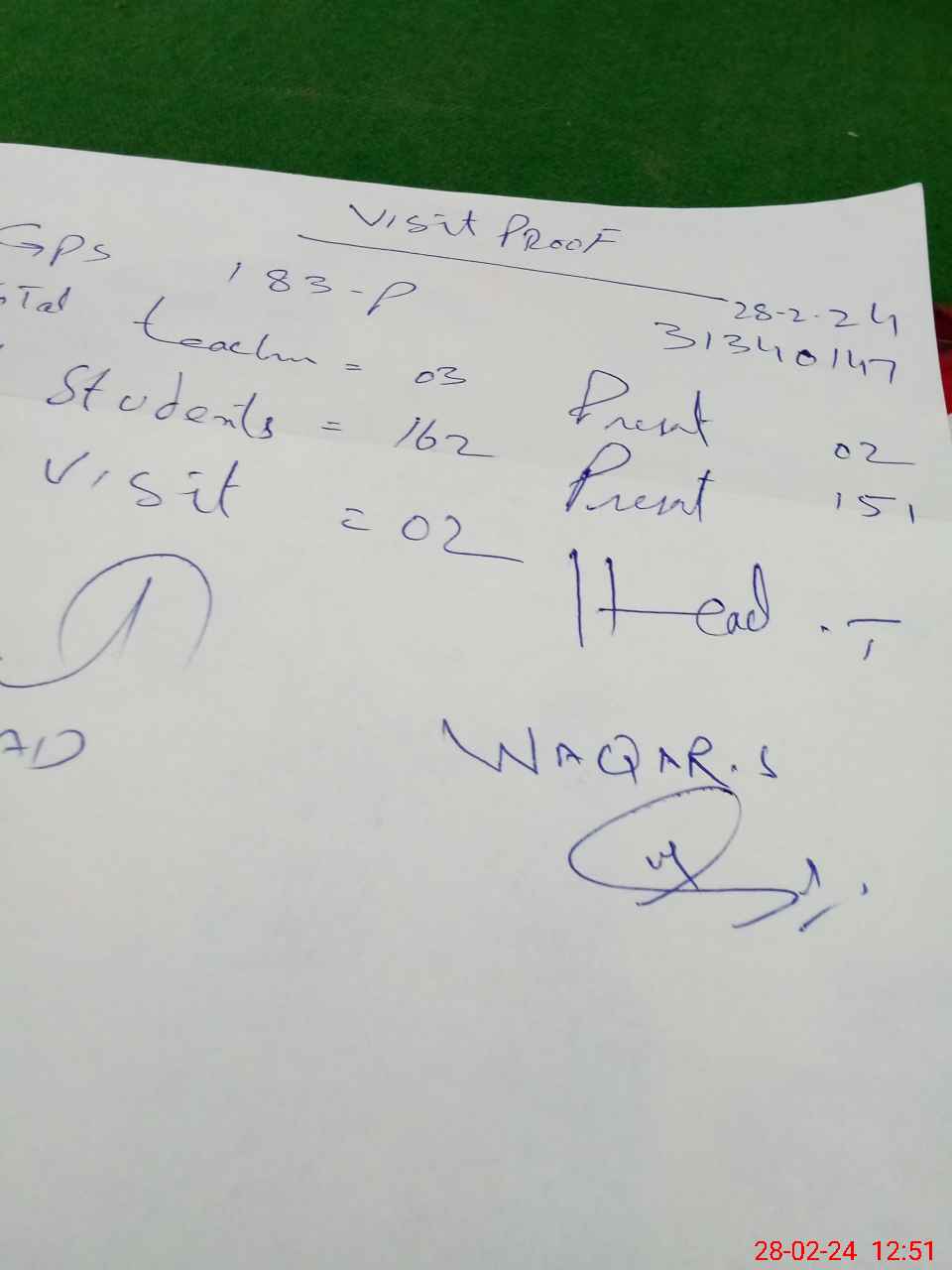 | EMIS Code: 31340147 | Name of School: GPS CHAK NO 183 PB | |||