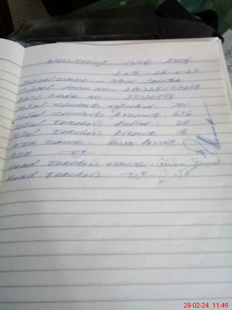 | Attendance Register | Head Teacher | MEA with School | Visit Proof |