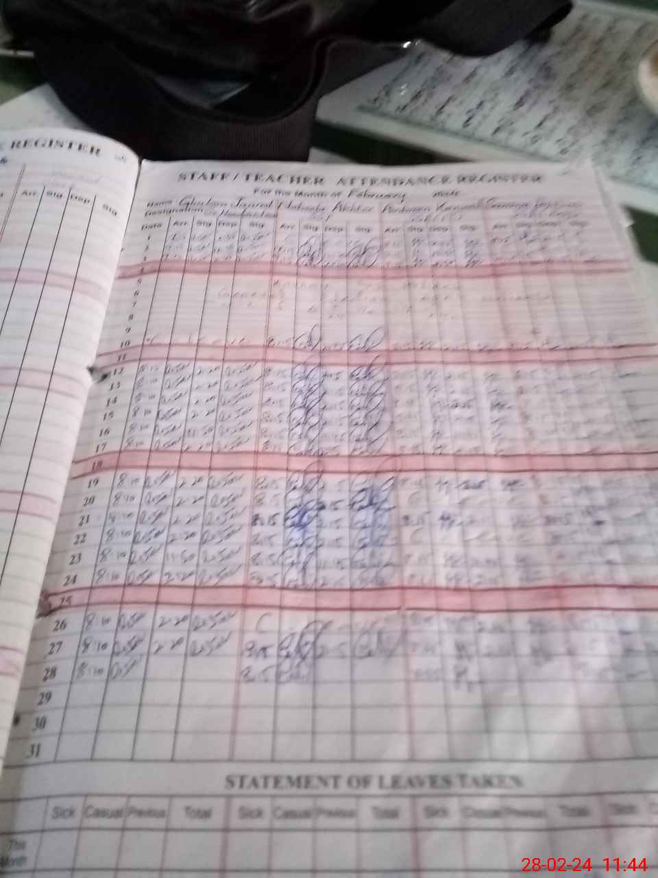 | 37**** | Na**** Ta**** | 2 | 0 | 0 | 31 | 0 | 0 | 0 | 0 | 0 | 0 | Absent (Un-Authorized) | |