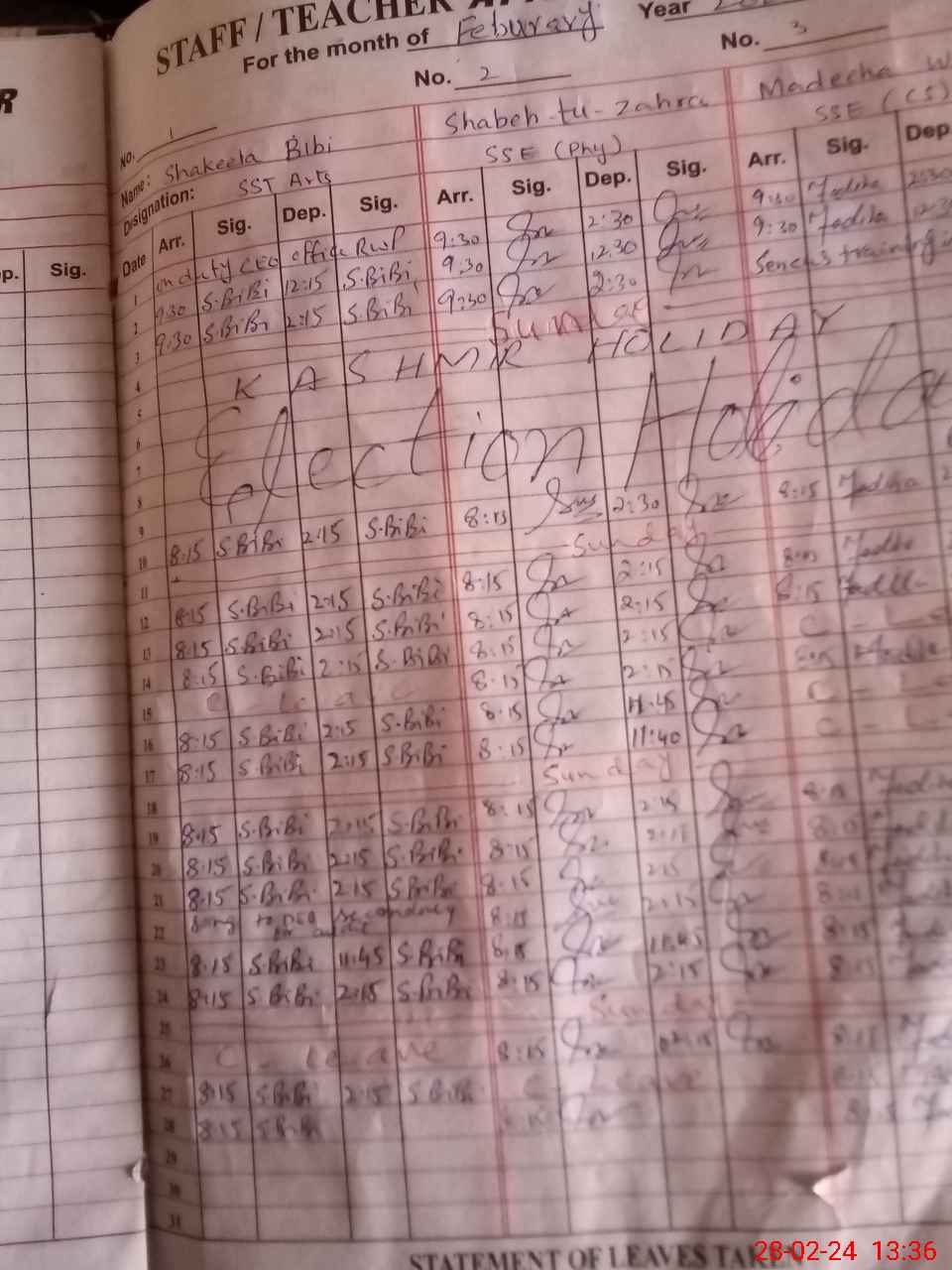 | 36**** | As**** Za**** | 1 | 0 | 0 | 31 | 0 | 0 | 0 | 0 | 0 | 0 | Absent (Un-Authorized) | |