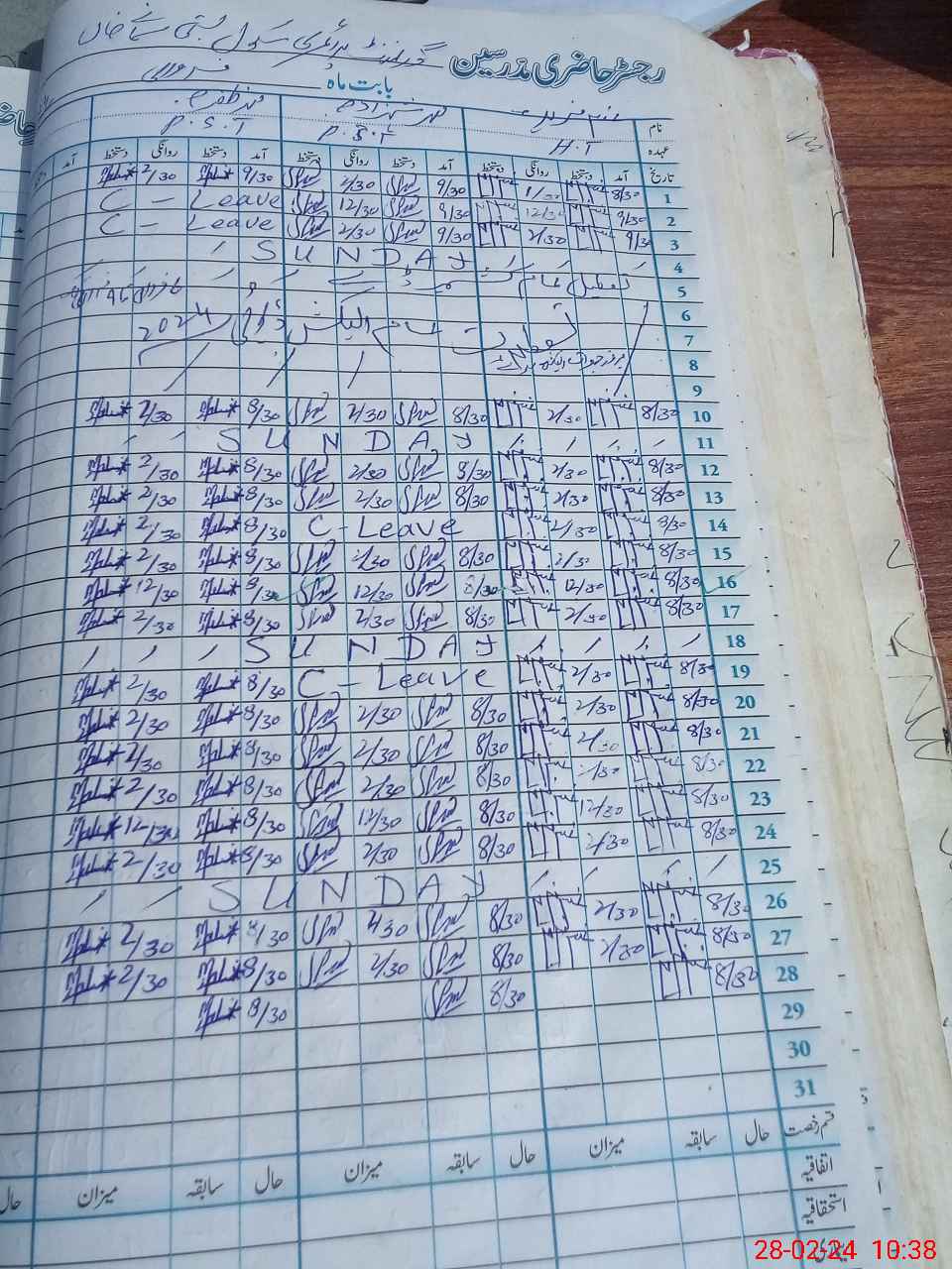 | Leave | Duty | Absent | Maternity | Medical | Ex- Pak |
