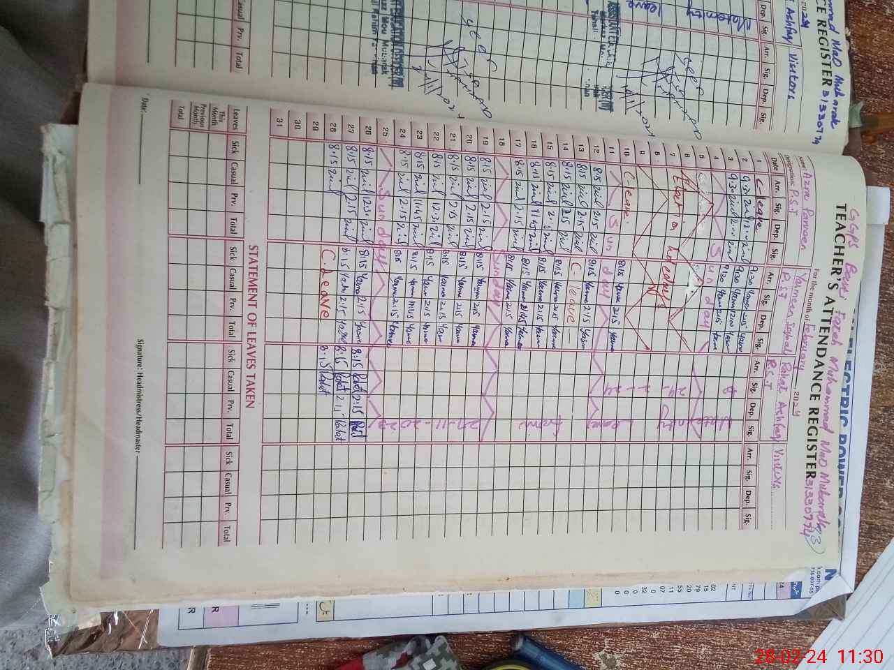 | Leave | Duty | Absent | Maternity | Medical | Ex- Pak |