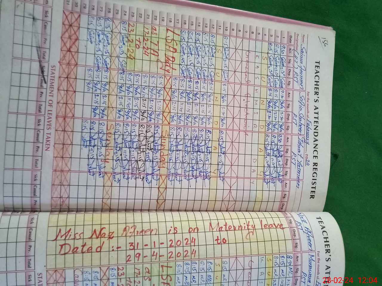 | 31**** | Na**** Af**** | PST | Regular | 2 | 0 | 0 | 0 | 0 | 0 | 0 | 0 | 2 | Maternity |