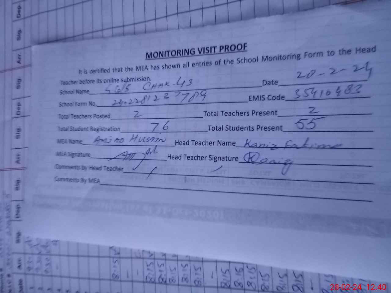 | Certified that this School was Inspected by the Undersigned MEA/DMO Today and the Information Stated Above is as Per Record. | |||||