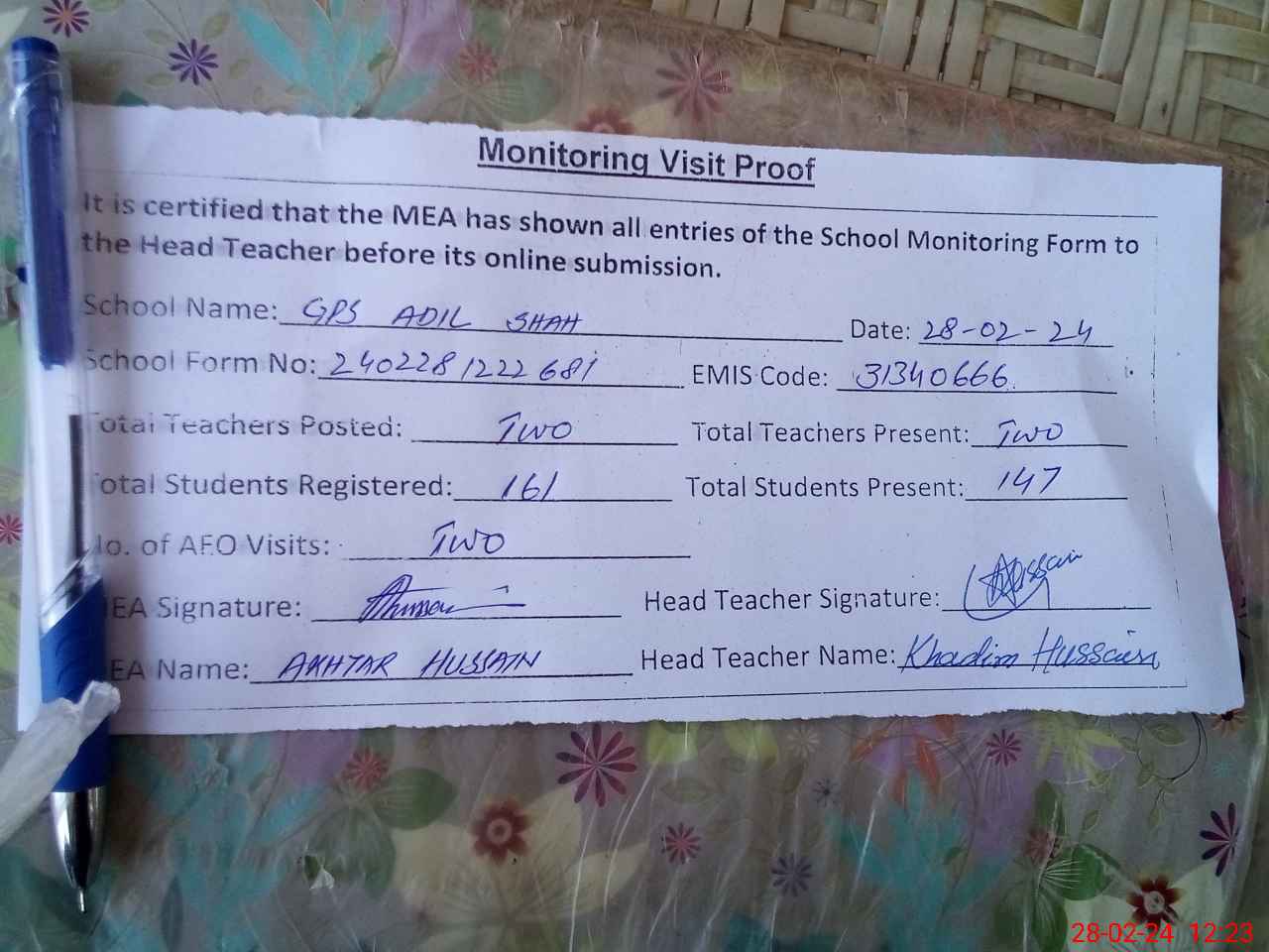 | EMIS Code: 31340666 | Name of School: GPS ADIL SHAH | |||