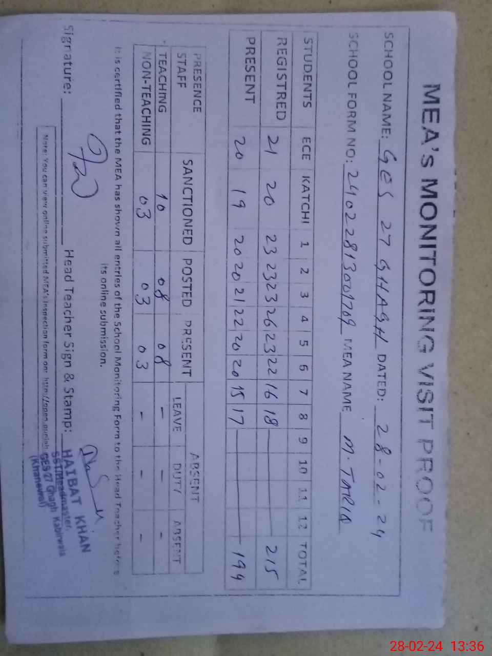 | EMIS Code: 36410079 | Name of School: GES 27 GHAGH, P/O ADDA 25 PUL, ABDUL HAKIM | |||